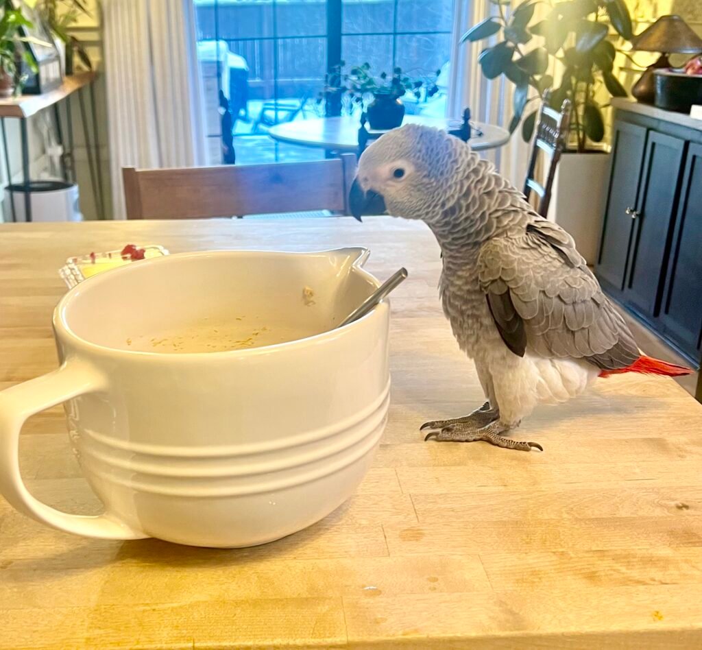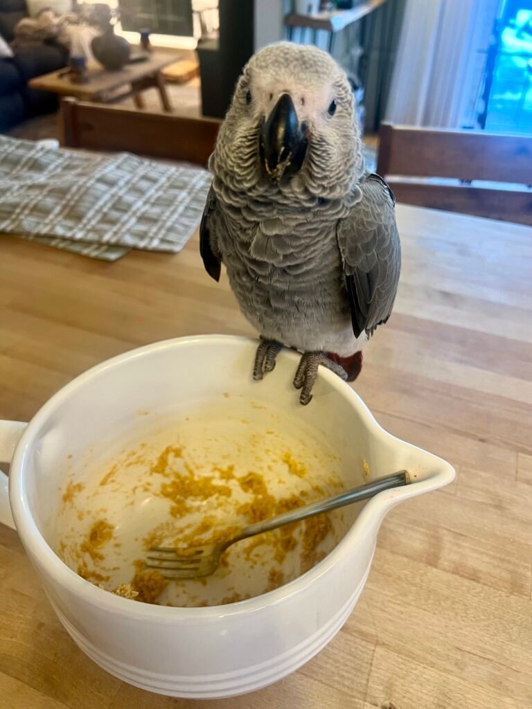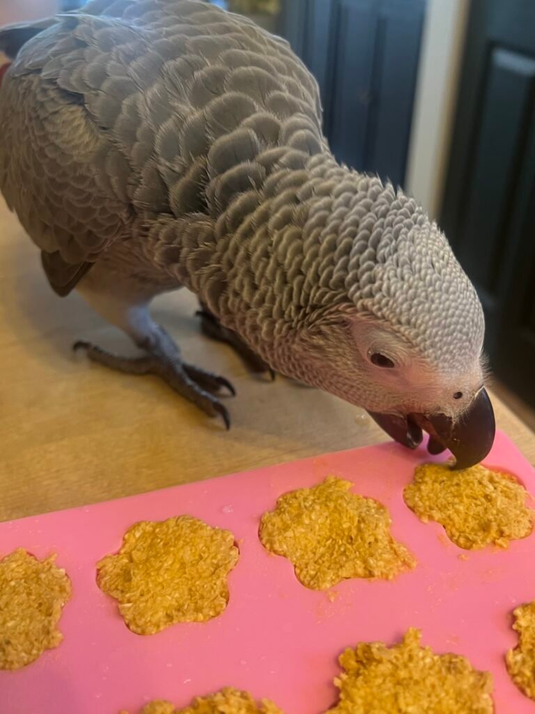 7. Cool and Serve: Allow the birdie bread to cool completely before cutting it into pieces and giving it to your feathered friend. Birdie bread should only make up a small percentage of your parrot’s total diet. keeping in mind what additional fruits and/or nuts you added. The more nuts and fruits, the higher the fat and sugar content.